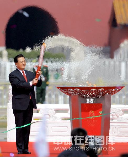 图片 奥运火炬接力启动 胡锦涛主席点燃圣火盆_赢球体育官网_赢球体育APP在哪下载-游戏平台